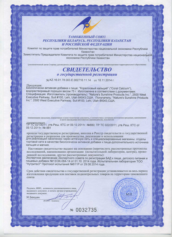 БАД Коралловый кальций получен из измельченных кораллов, собранных в море около островов Рюкю (Япония), которые содержат 20-28% кальция и 10-14% магния (соотношение 2:1). Содержит карбонаты кальция и магния, а также небольшое количество других биоэлементов (калий, фосфор, железо, сера, кремний, хром, марганец, медь, цинк и др.). Более 4 млн. японцев регулярно применяют коралловый кальций. Его используют не только при остеопорозе, но и при гипертонической болезни, деструктивных заболеваниях (артрозо-артриты, радикулиты, пяточные шпоры и др.). Имеются наблюдения, когда после 2-3 месяцев приема кораллового кальция наблюдали улучшение у 80% больных ревматоидным полиартритом. Коралловый кальций является мощным натуральным сорбентом, который очень быстро связывает хлор (не только неорганический, но и органический), соли тяжелых металлов, токсины. В состав препарата также входит монтмориллонит (бентонит), который относится к подклассу слоистых силикатов и является уникальным источником железа, кремния, магния и других биоэлементов.