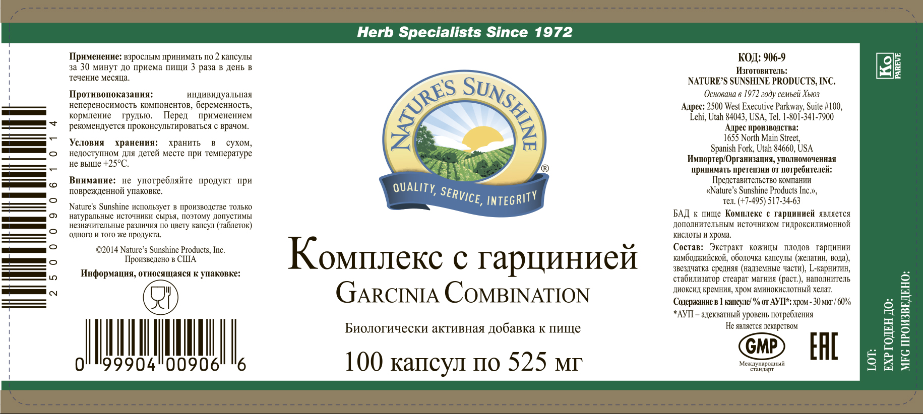 БАД к пище Комплекс с гарцинией является дополнительным источником гидроксилимонной кислоты и хрома.