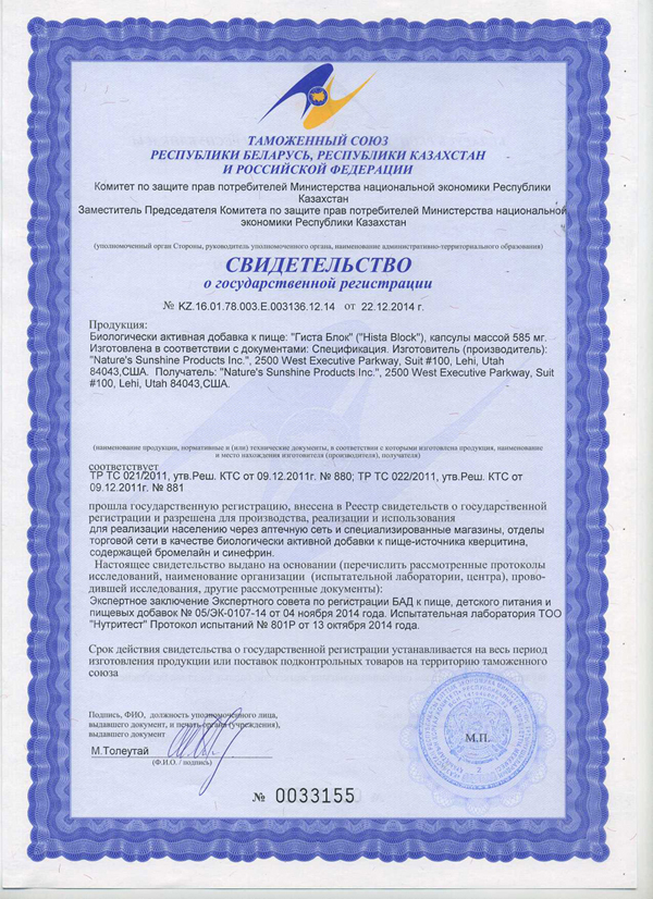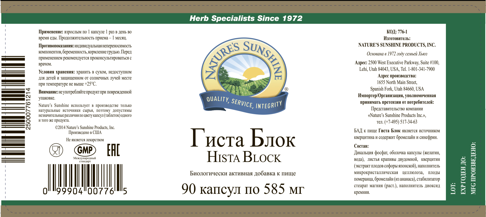БАД к пище Гиста Блок является дополнительным источником кверцитина, содержит бромелайн и синефрин.