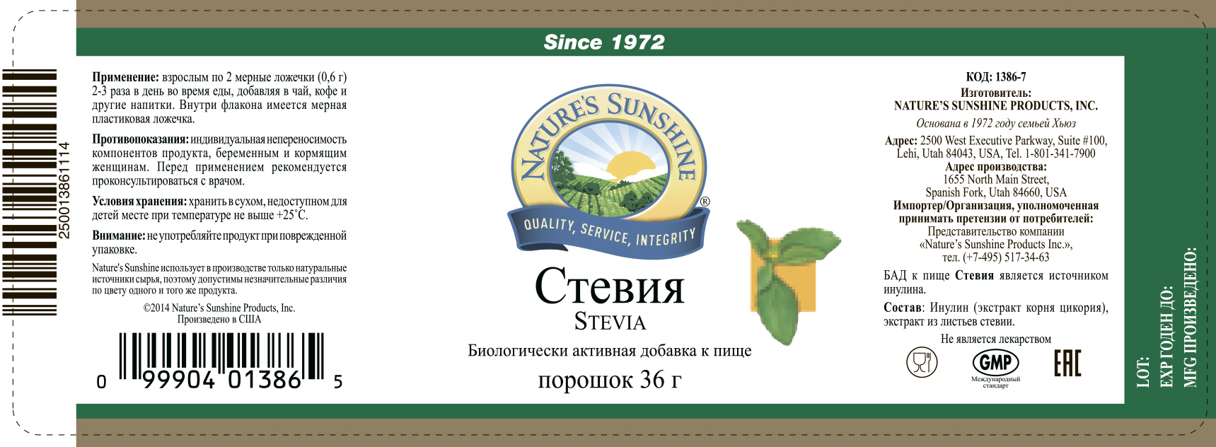 В БАД Стевия компании NSP входит концентрированный экстракт стевии. Ее можно рекомендовать людям с лишним весом, при повышении холестерина и сахара в крови, а также использовать как подсластитель для напитков, кулинарных блюд (каши), кондитерских изделий, выпечки. В состав продукта включен инулин, который является пребиотиком и служит питательной средой для бифидо- и лактобактерий.